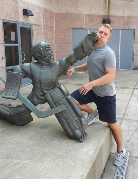 Heykeller ile yapılan birbirinden komik hareketler