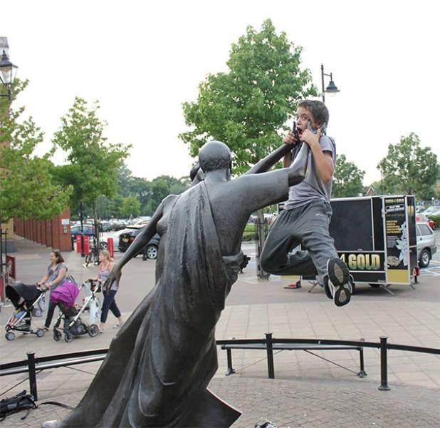 Heykeller ile yapılan birbirinden komik hareketler