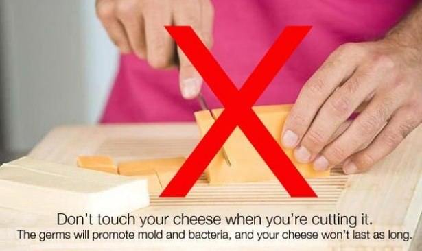 Peyniri keserken kesinlikle elinizle dokunmayın. Elinizdeki bakteriler peynirin daha çabuk küflenmesine neden olacaktır. Keserken peyniri ambalajından tutarak kolaylık sağlayabilirsiniz.