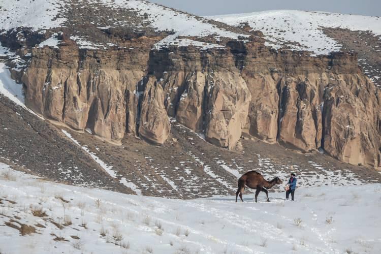 Çoban kardeşler kar üstünde şampiyon develer yetiştiriyor