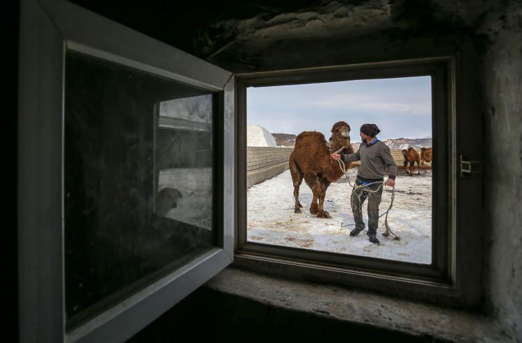 Çoban kardeşler kar üstünde şampiyon develer yetiştiriyor