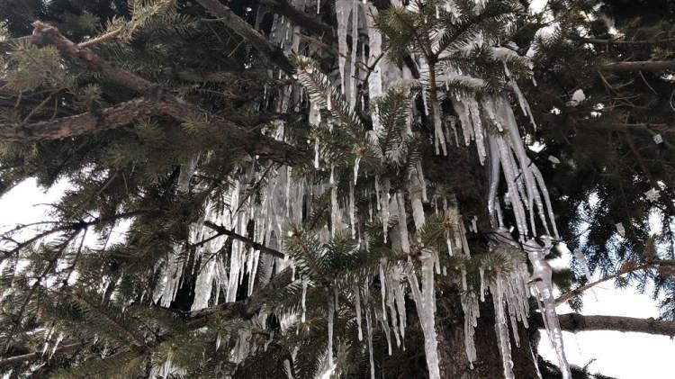 İlçede en dikkat çeken detay ise çatı saçaklarından sızan suların ağaçlarda oluşturduğu buz manzaraları oldu. Avizeyi andıran buzları gören ziyaretçiler, cep telefonları ile bol bol fotoğraf çekti.