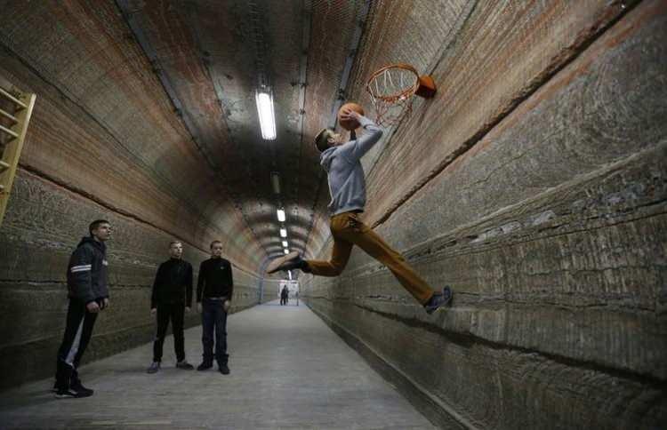 Minsk'deki tuz madeninde oynayan çocuklar. Çocukların burada olmasının sebebi iste burada bir mağara terapisi merkezi bulunması. Buraya tedavi olmaya ise yılda 7 binden fazla insan geliyor.