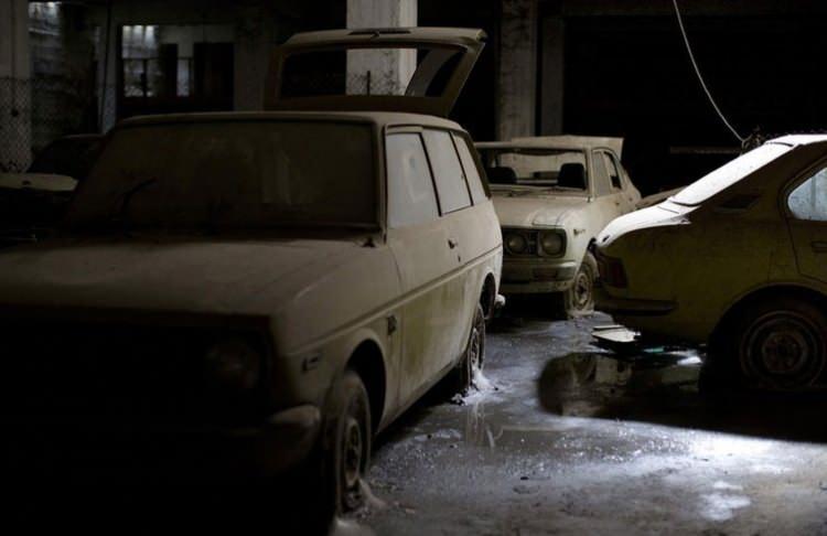 Kıbrıs'ta yer altı mağarasında bulunan 74 model arabalar. Neredeyse hiç kullanılmamış olan arabalar, zamanında satış için Japonya'dan getirilmiş.