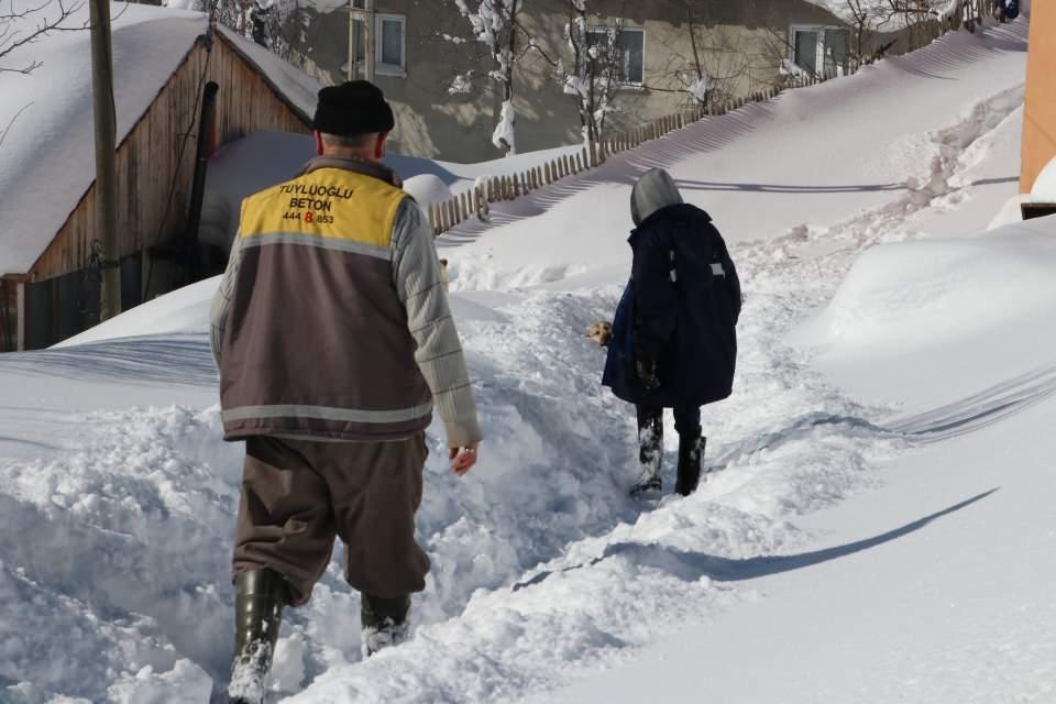 Köylüler, karla mücadele ekiplerini sevinçle karşılıyor