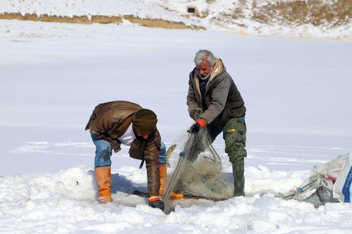Yaklaşık 25 yıldır baraj gölünde avlandığını söyleyen balıkçı Hikmet Doğal, yazın kayıkla açılıp, kışın buzları kırarak avladıklarını söyledi.