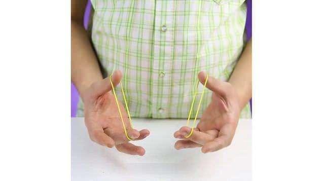 İki elinizin parmaklarına geçirdiğiniz lastikleri gösteri sırasında, birbirleri içinden geçirebilirsiniz.