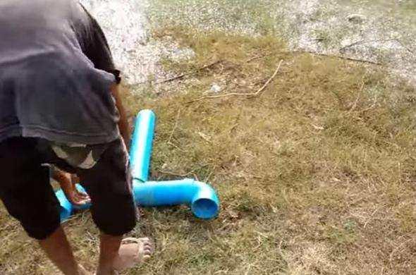Nehrin kenarındaki toprağı borunun şeklinde kazıyorlar..