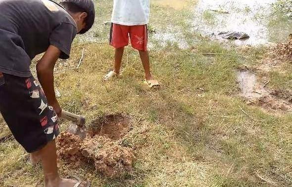Daha sonra borunun üst kısımlarının altına gelecek şekilde iki çukur açıyorlar.