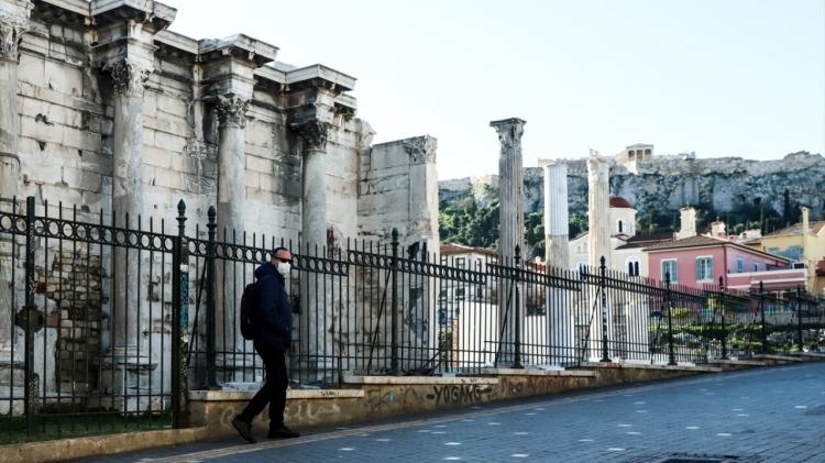 Akropolis yakınındaki bir sokakta bazı vatandaşların önlem amaçlı maske taktığı görüldü.