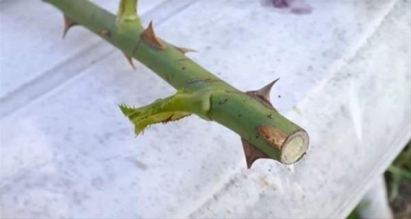 Gül fidanını yerleştirmeden önce, aşırı yaprakları ve dikenleri ayıkladı.