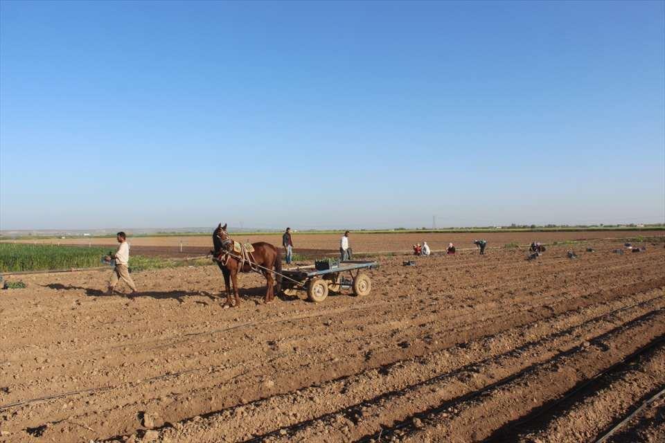 Şanlıurfa'nın Suruç ilçesinde yeni tip koronavirüsle (Kovid-19) mücadele kapsamında sokağa çıkma kısıtlamasından muaf tutulan çiftçiler, üretime devam etti.