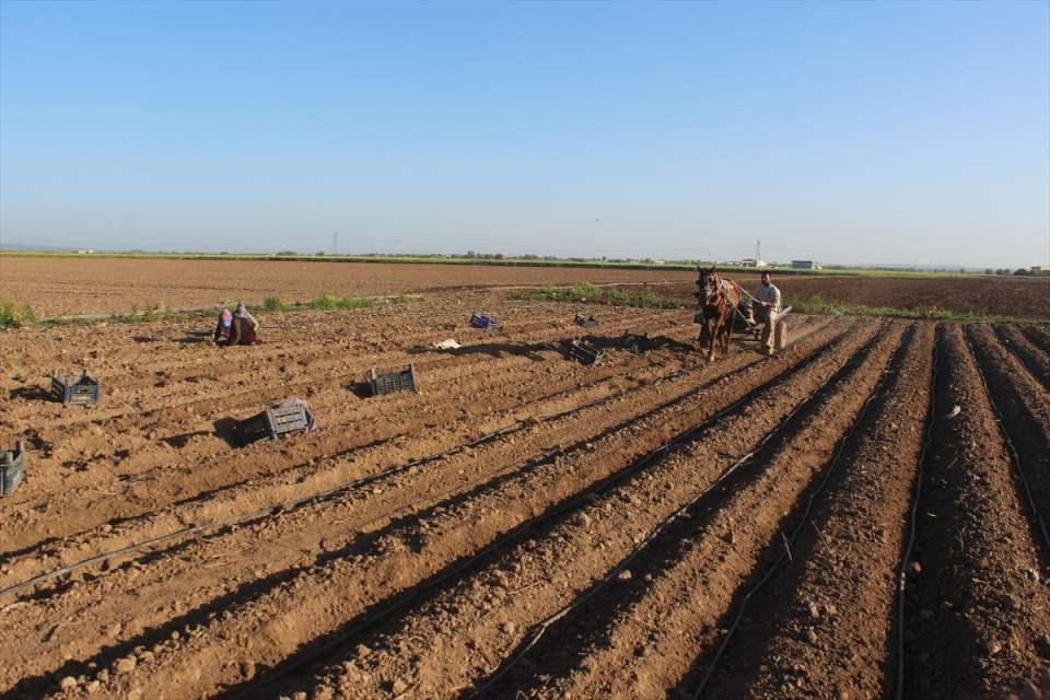 Sokağa çıkma kısıtlamasından muaf tutulan çiftçiler tarlanın yolunu tuttu