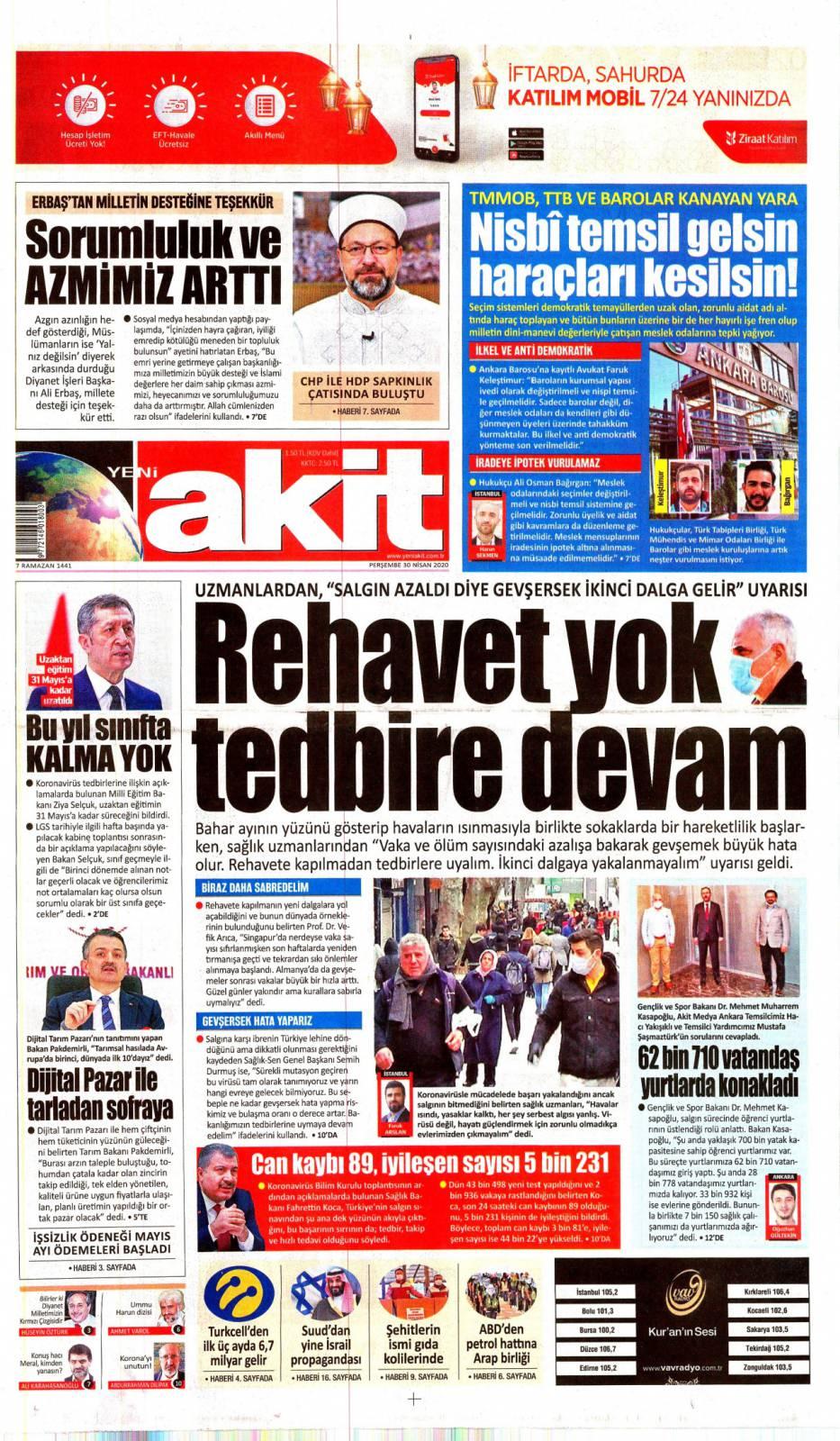 30 Nisan gazete manşetleri