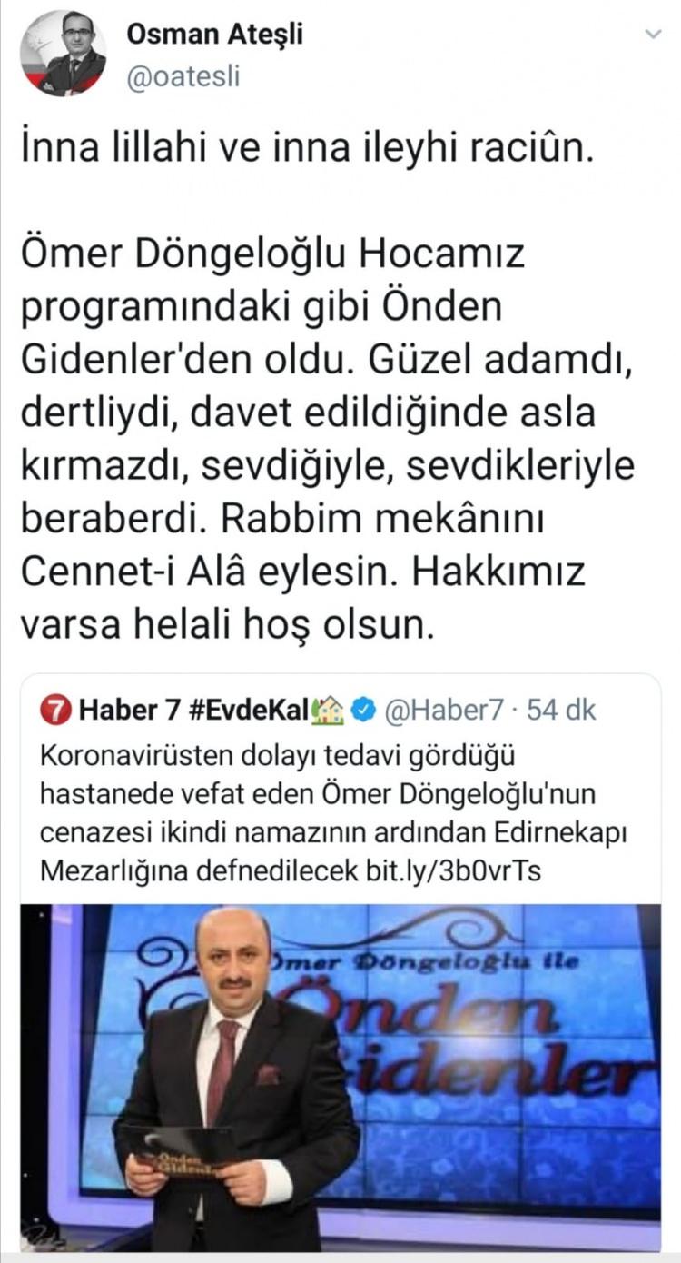 Önemli isimlerden Ömer Döngeloğlu'na başsağlığı mesajları