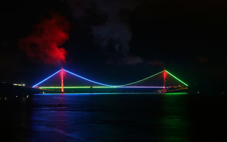 İstanbul'un simgeleri Azerbaycan bayrağı renklerine büründü