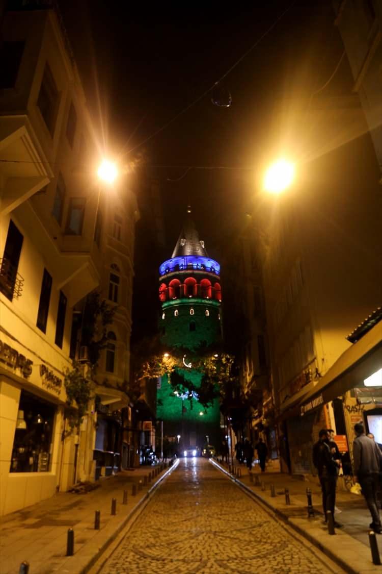 İstanbul'un simgeleri Azerbaycan bayrağı renklerine büründü