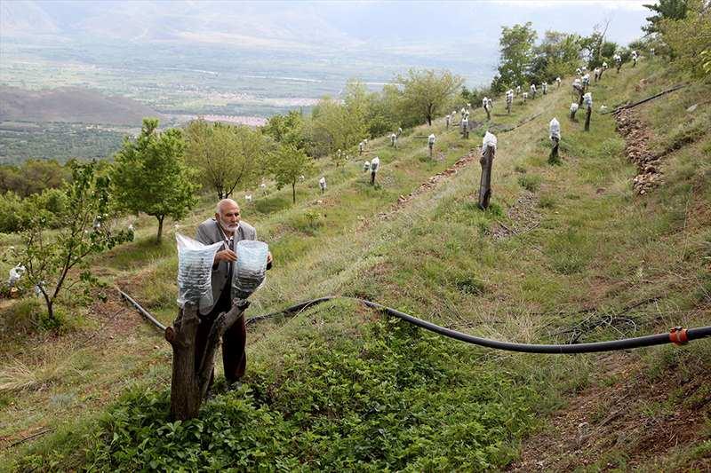 Erzincanlı çiftçiden dona karşı damacana ve poşetli önlem