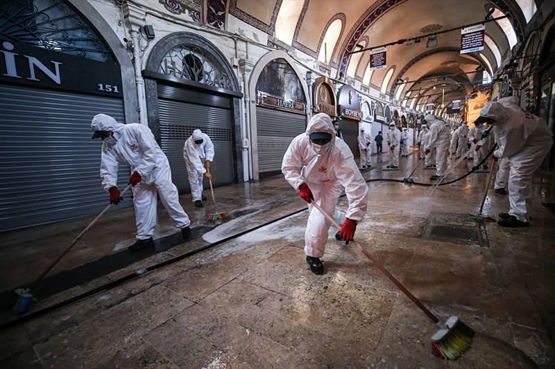 Kapalıçarşı Yönetim Kurulu Başkanı Fatih Kurtulmuş, AA muhabirine yaptığı açıklamada, Kapalıçarşı'nın 42 bin metrekare alanı olduğunu, bunun 12 bin metrekaresini oluşturan yollar ve ara sokakların bugün temizlendiğini ve dezenfekte edildiğini söyledi.