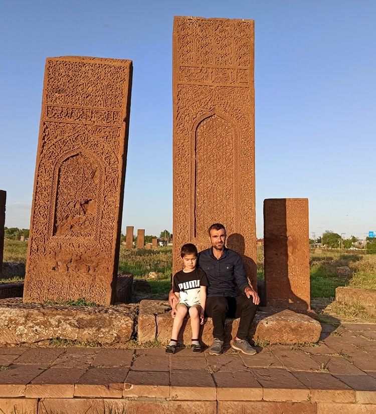 Boyları 4,5 metreye kadar varan, üzerindeki yazı ve şekillerle her biri bir sanat eseri niteliği taşıyan mezar taşlarını bünyesinde barındıran tarihi mezarlığı ziyaret eden ziyaretçiler, yürüyüş yollarına çakılan sosyal mesafe uyarı levhalarını da dikkate alarak mezarlığı geziyor.