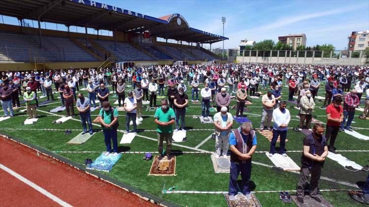 Bağcılar'da 3 bin kişilik cemaat cuma namazını stadyumda kıldı