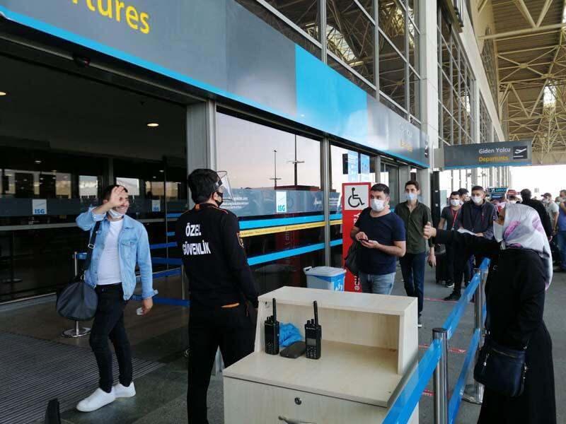 Bu sırada terminal dışında ve giriş noktalarında polis ve güvenlik görevlileri sık sık uyarılarda bulundu. Havalimanına biletli yolcular dışında yolcu yakınlarının terminale alınmaması gibi önlemler sayesinde uğurlamalar sosyal mesafe kuralarına göre yapıldı.
