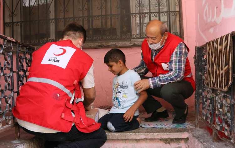 Hatay'da çöpten atık toplayan Suriyeli çocuğa Türk Kızılay yardım etti