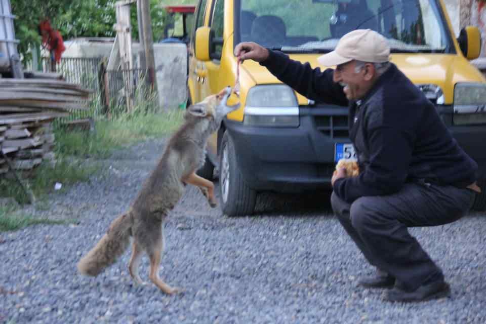 "Bili Bili" adını verdikleri tilkinin geldiğini çevredeki kargaların seslerinden anlayan aile, evin önüne çıkarak hayvanı besliyor.
