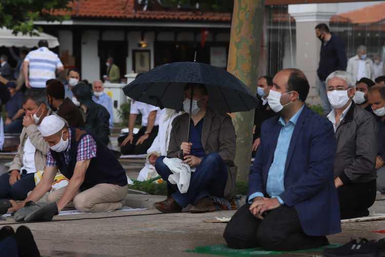 Sağanak yağmur altında koronavirüs tedbirli cuma namazı