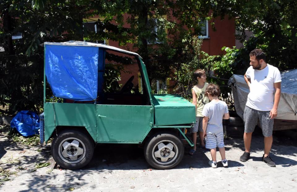Sac parçalarından yaptığı araç görenleri şaşırtıyor