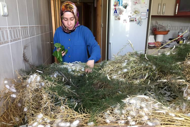 İpek böcekleri ile iç içe yaşam süren Gül ailesi, yaklaşık 5 gün sonra hasat edecekleri kozaları satarak emeklerinin sonunda iyi bir gelir elde etmeyi hedefliyor.