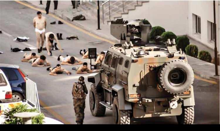 Fetullahçı Terör Örgütünün (FETÖ) darbe girişimi sırasında Özel Harekat polislerinin operasyon düzenlediği Jandarma Genel Komutanlığı binasında gözaltına alınan yaklaşık 200 asker yarı çıplak vaziyette binadan çıkarıldı.
