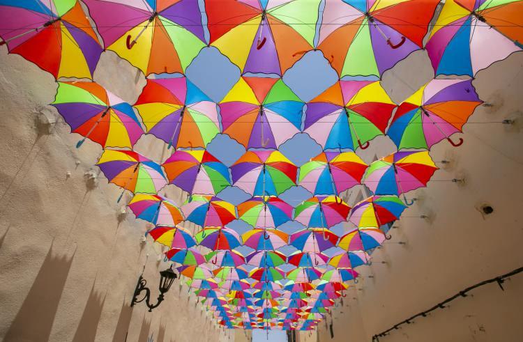 Tunus'taki metruk tarihi sokak şemsiyelerle rengarenk