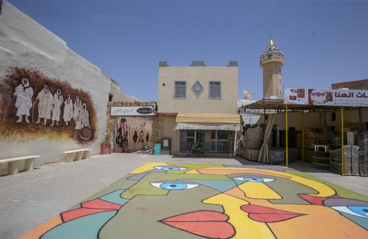 Tunus'taki metruk tarihi sokak şemsiyelerle rengarenk