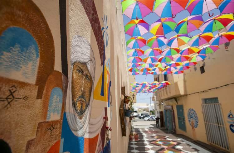 Tunus'taki metruk tarihi sokak şemsiyelerle rengarenk
