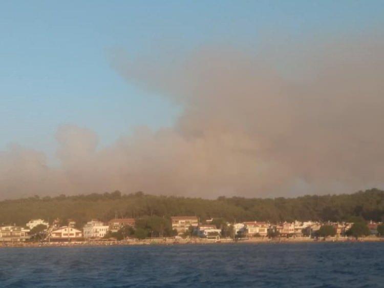 Havanın kararmasıyla havadan müdahalenin durduğu yangın bölgesine çok sayıda arazöz ve yangın söndürme işçisi sevk edildi.