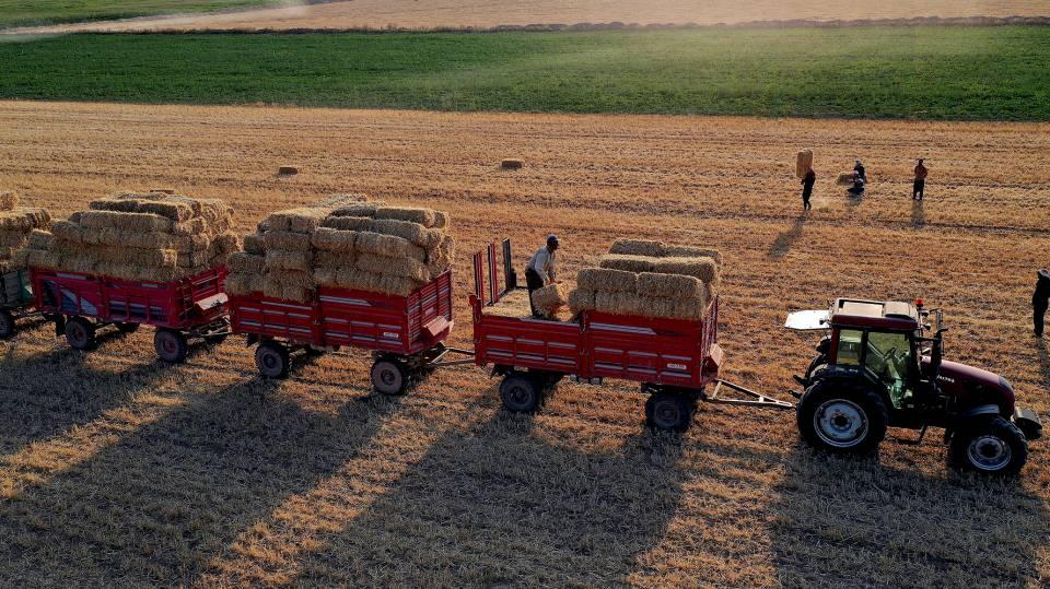 İşçilerden İsmail Musli de saman balyası taşıyarak kazandığı parayla 13 kişilik ailesini geçindirdiğini ve üç çocuğunu okuttuğunu anlattı.