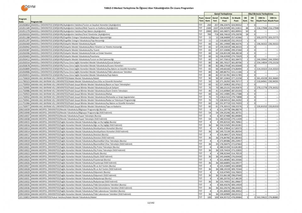 2020 2 yıllık üniversite tavan ve taban puanları 2020