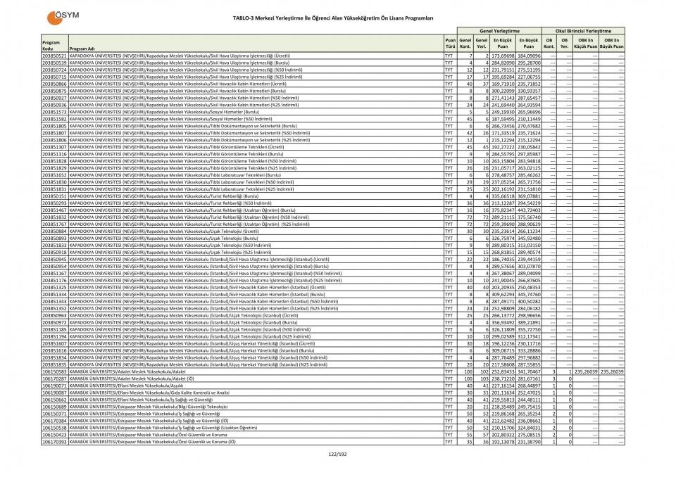 2020 2 yıllık üniversite tavan ve taban puanları 2020