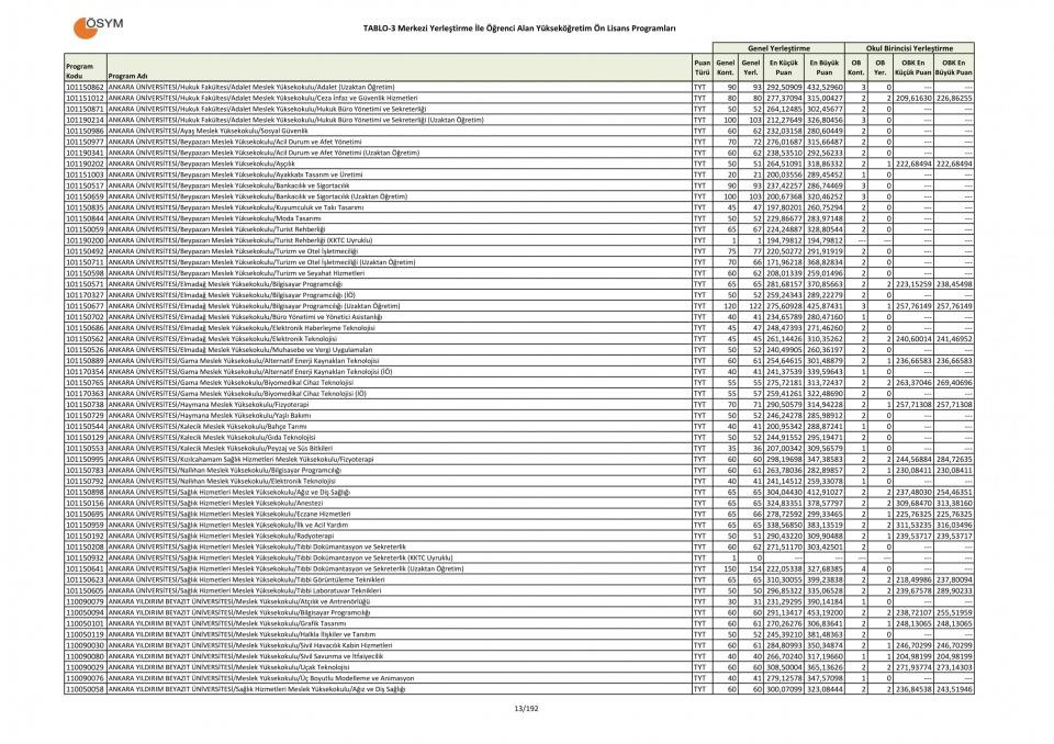 2020 2 yıllık üniversite tavan ve taban puanları 2020