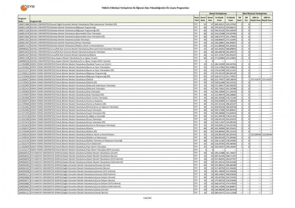 2020 2 yıllık üniversite tavan ve taban puanları 2020