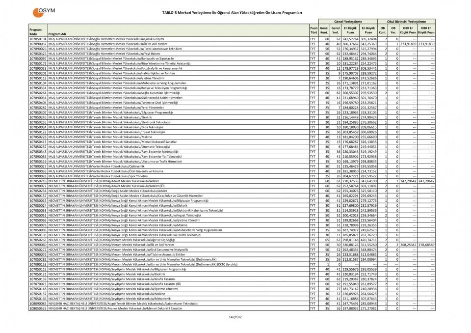 2020 2 yıllık üniversite tavan ve taban puanları 2020