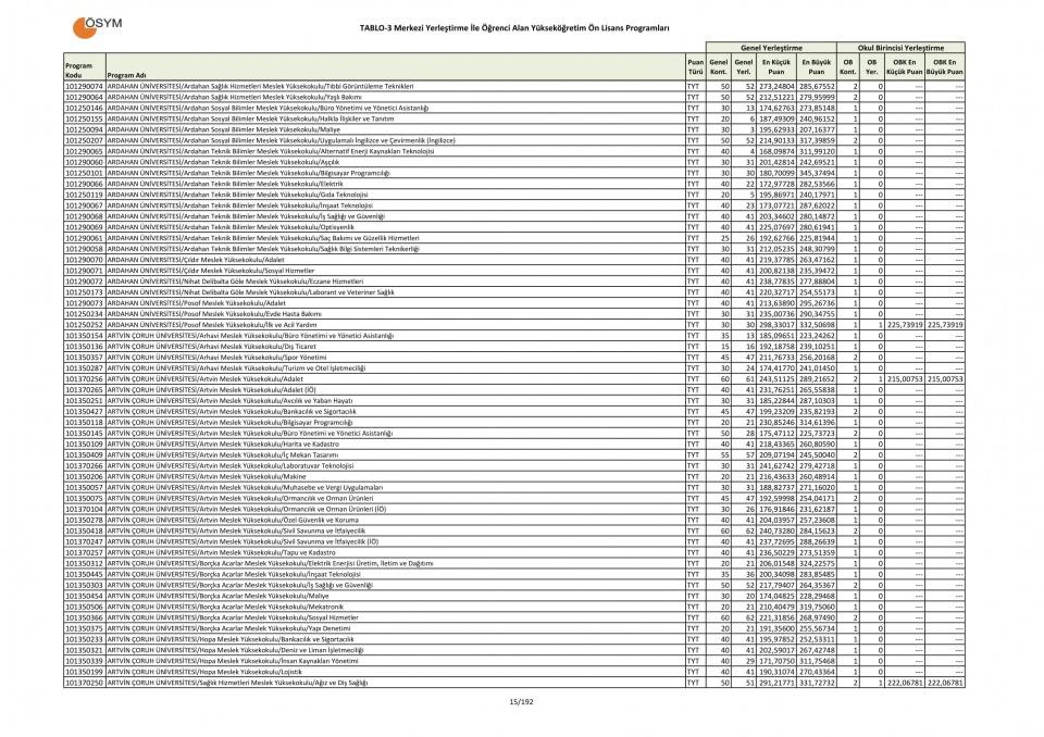 2020 2 yıllık üniversite tavan ve taban puanları 2020