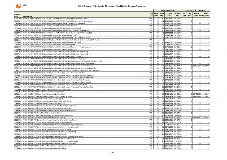 2020 2 yıllık üniversite tavan ve taban puanları 2020