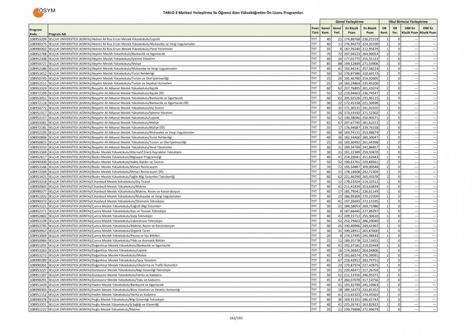 2020 2 yıllık üniversite tavan ve taban puanları 2020