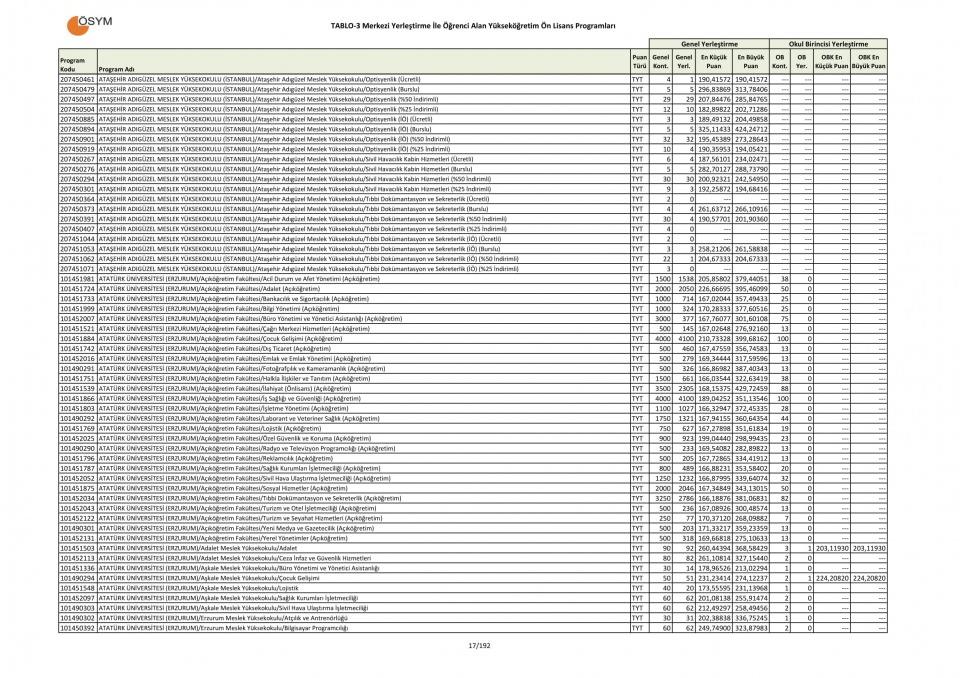 2020 2 yıllık üniversite tavan ve taban puanları 2020