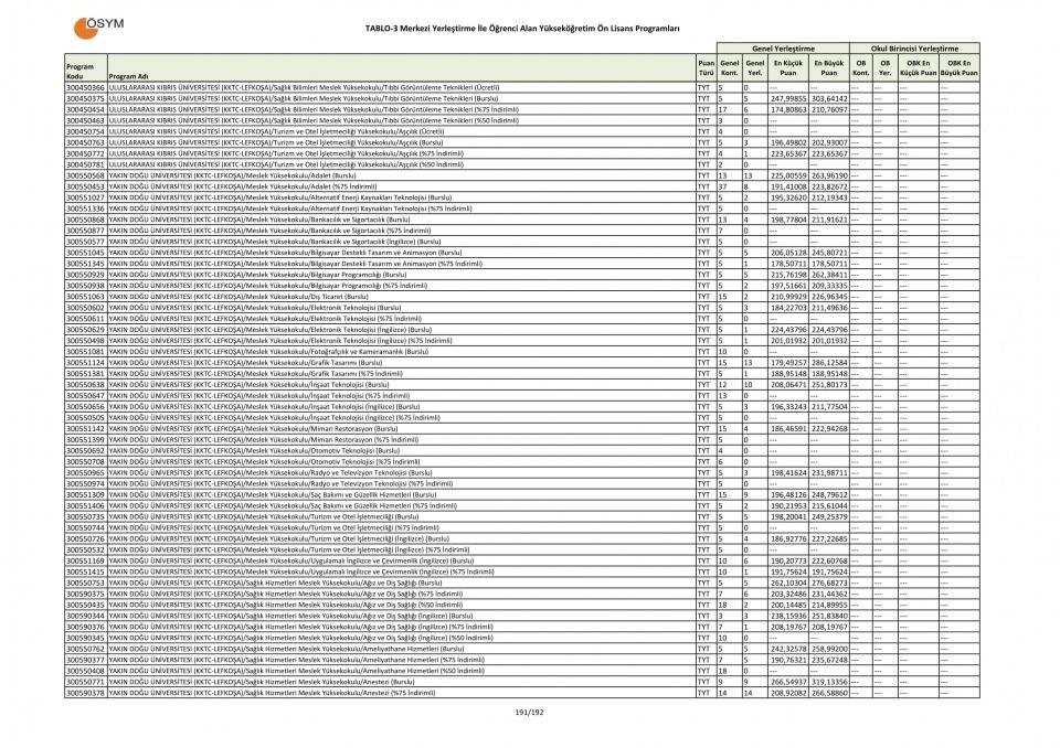 2020 2 yıllık üniversite tavan ve taban puanları 2020