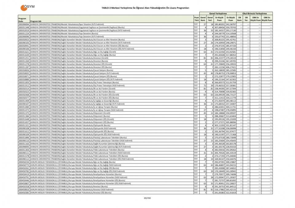 2020 2 yıllık üniversite tavan ve taban puanları 2020