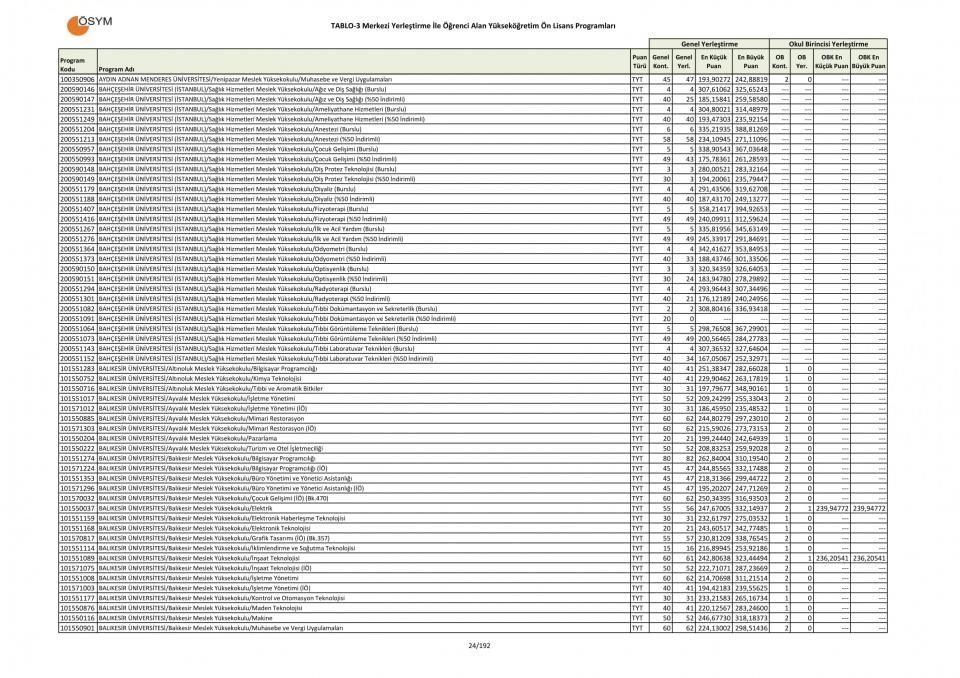 2020 2 yıllık üniversite tavan ve taban puanları 2020