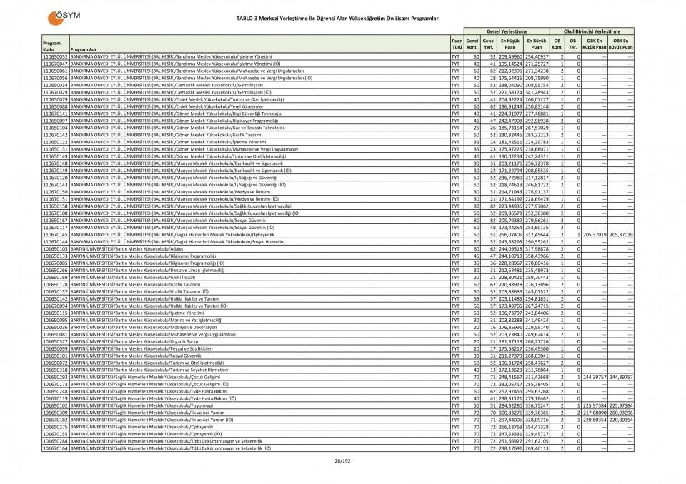 2020 2 yıllık üniversite tavan ve taban puanları 2020